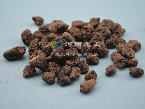 火山巖濾料是用在曝氣生物濾池的生物填料。火山巖濾料主要用作生物水處理的生物載體。濾料表觀為不規則顆粒,顏色為黑褐色或灰褐色,多孔質輕,顆粒的粒徑可根據不同要求生產。